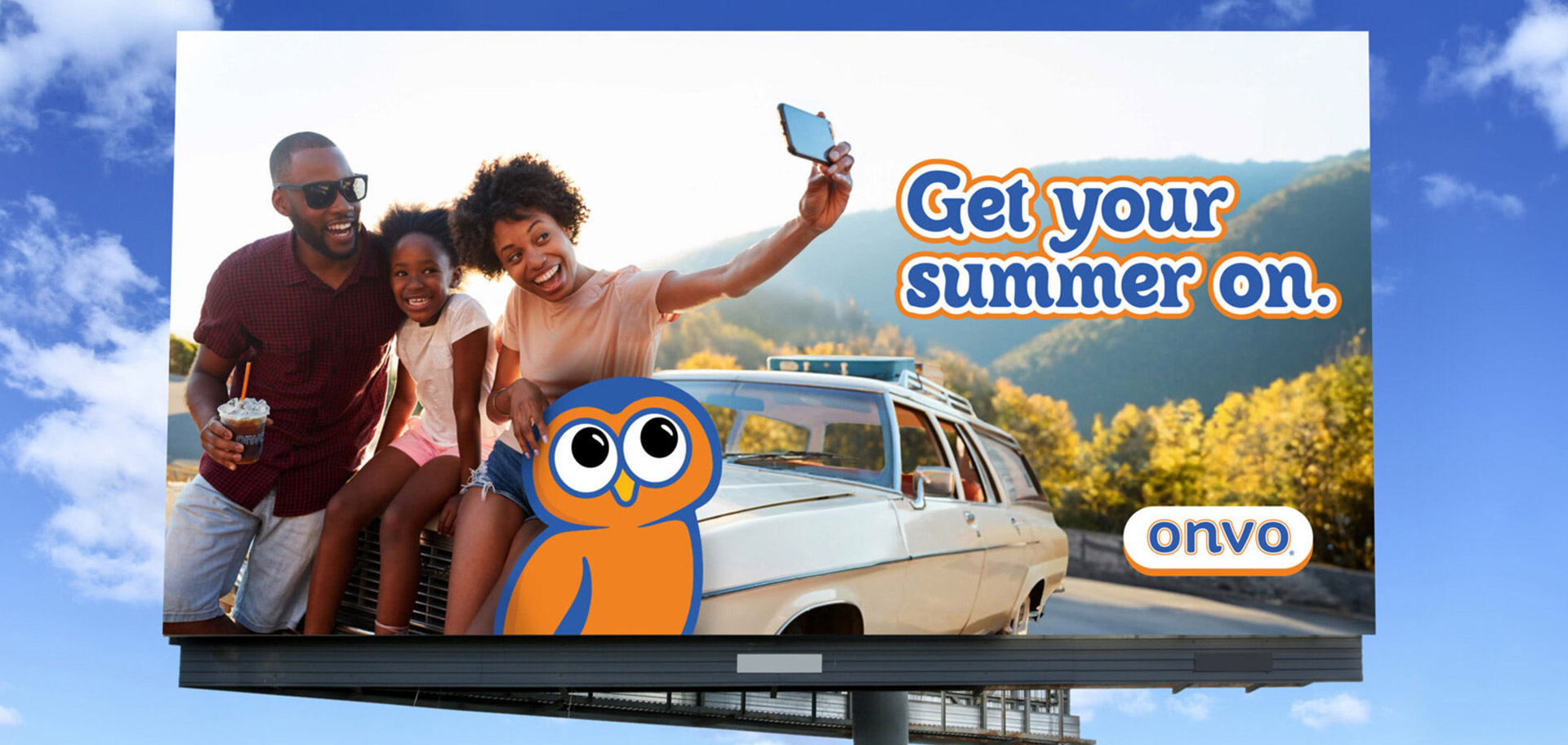 No matter how you summer, we wanted everyone to know that Onvo is always a pitstop on the way to a good time. By taking our inspiration from summer vacation posts on social media, we created a visual campaign that felt modern, but also played into universally nostalgic summer moments. Oh yeah: and we stuck Onvo the Owl in there. By literally making our mascot a part of summer activities, we were able to figuratively show how Onvo is there for all of your summer memories. Our full campaign consisted of out-of-home, in-store, and online assets, as well as several radio spots and video content. We were also able to repurpose and evolve the brand tagline we created for Onvo’s coffee campaign by giving it a seasonal spin. “Get Your Summer On” builds on the equity we created for the brand, and helps give it a lasting foundation.